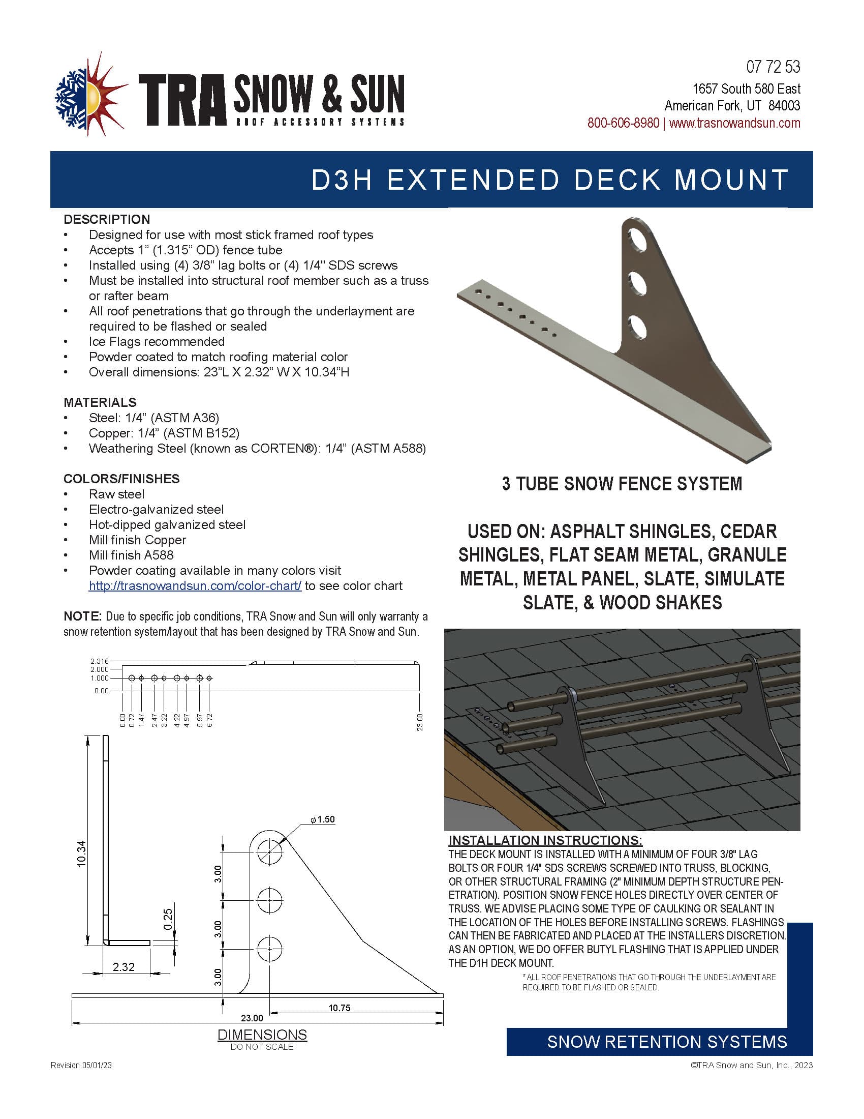 At TRA Snow and Sun we engineer and layout each project free of charge using many factors specific to your roof. We then provide you with the snow retention plan, layout and product details. TRA Snow and Sun representatives will work with you to design the most efficient snow retention system. Fill out our Snow Retention Checklist to get started.