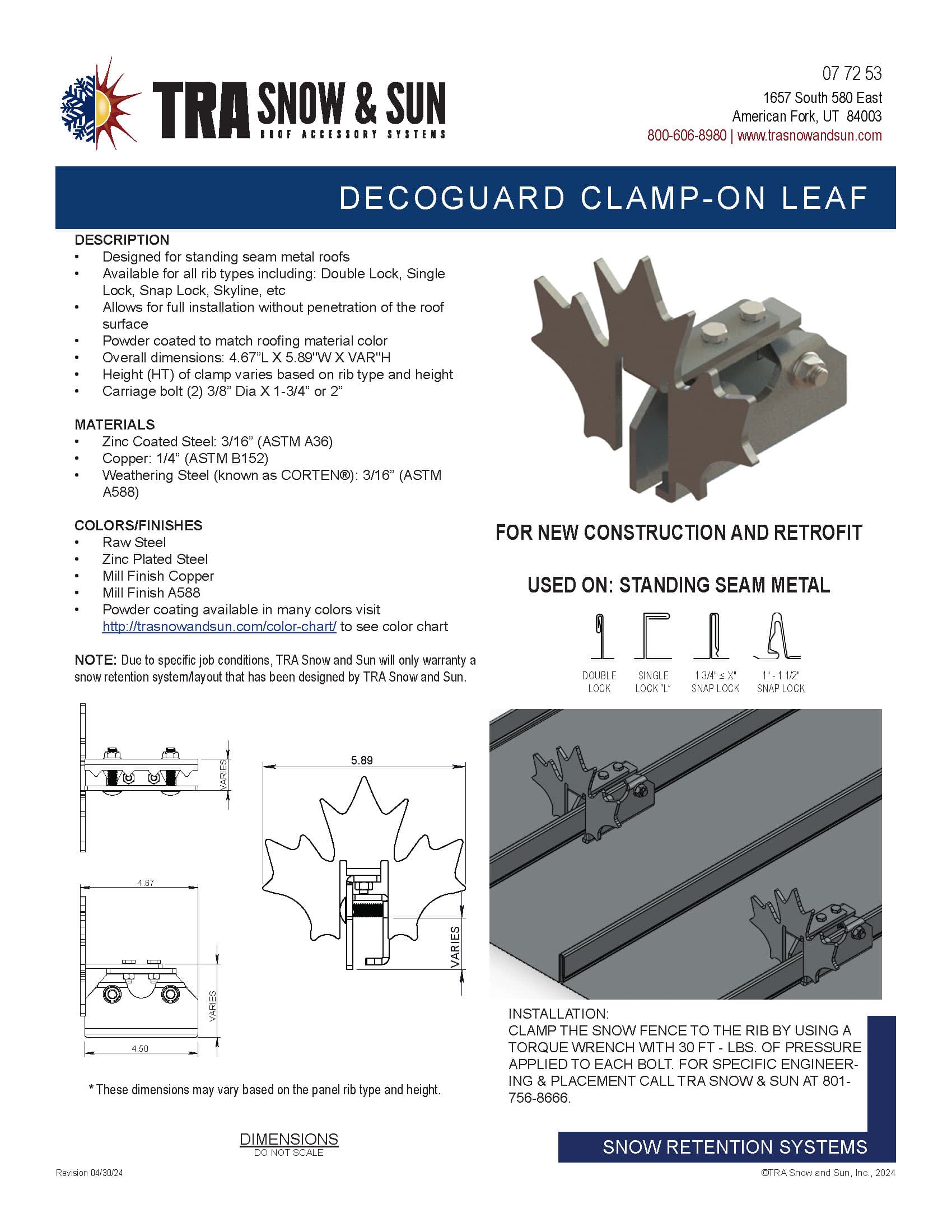 All Standing Seam Snow Fences have been tested from the fail point of the system. The holding strength is proven in their performance.
