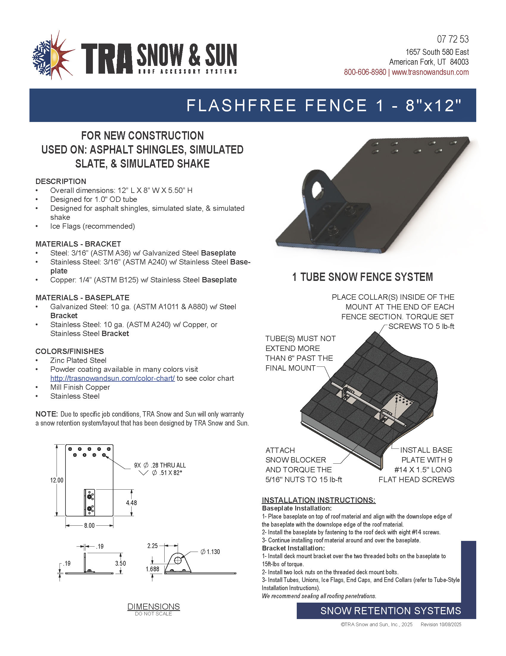 FlashFree Fence 1 – 8″x12″ Deck Mount Snow Fence