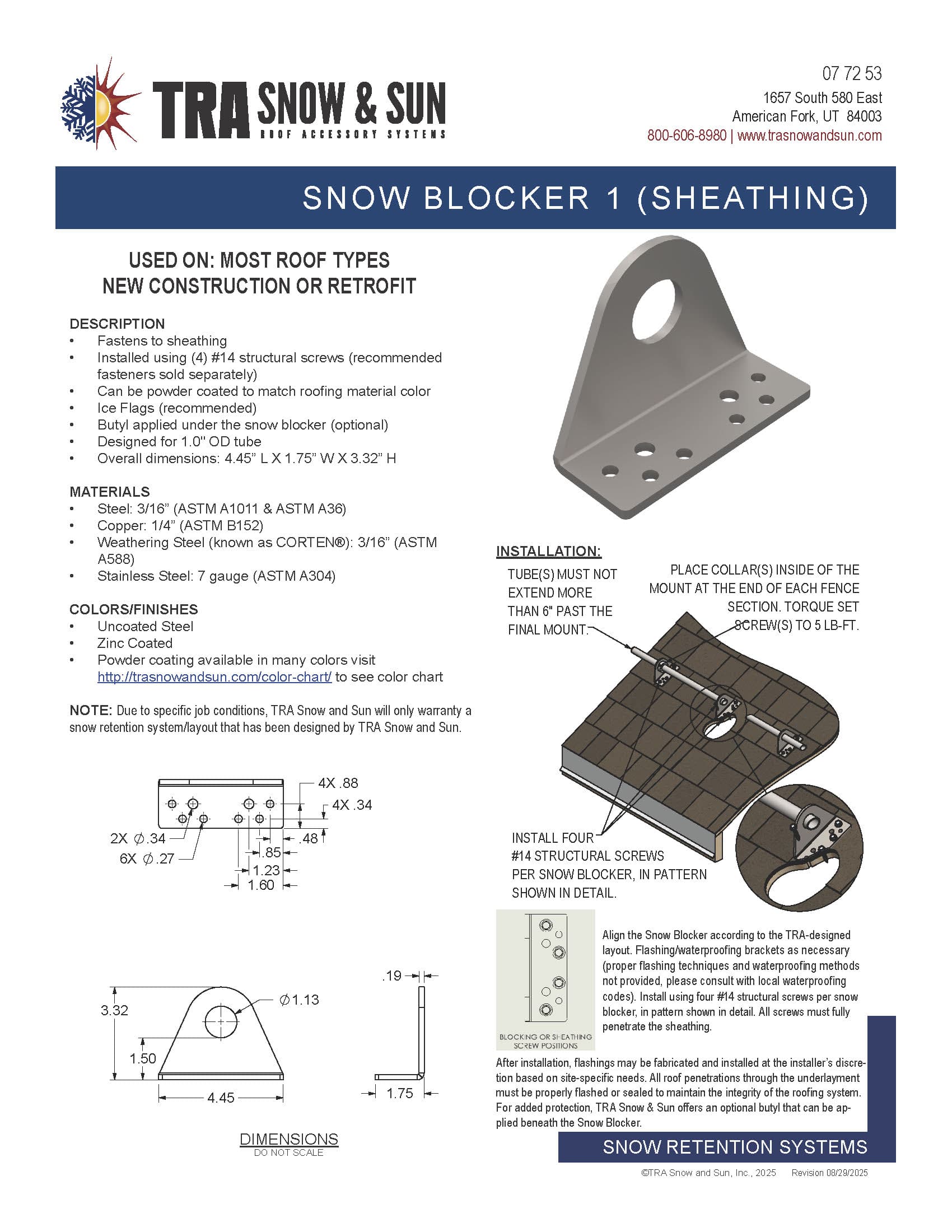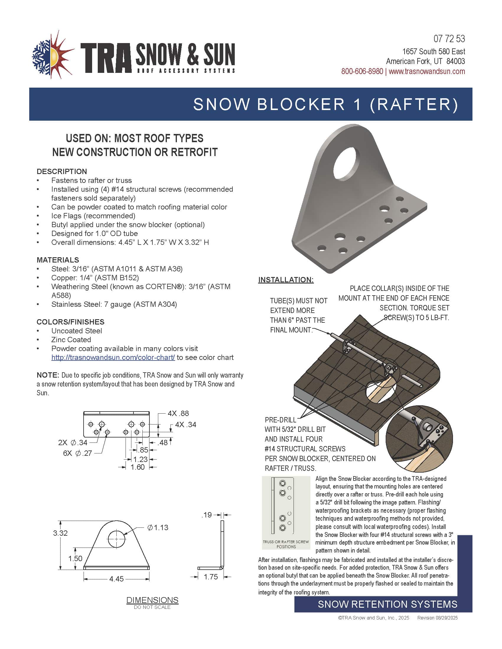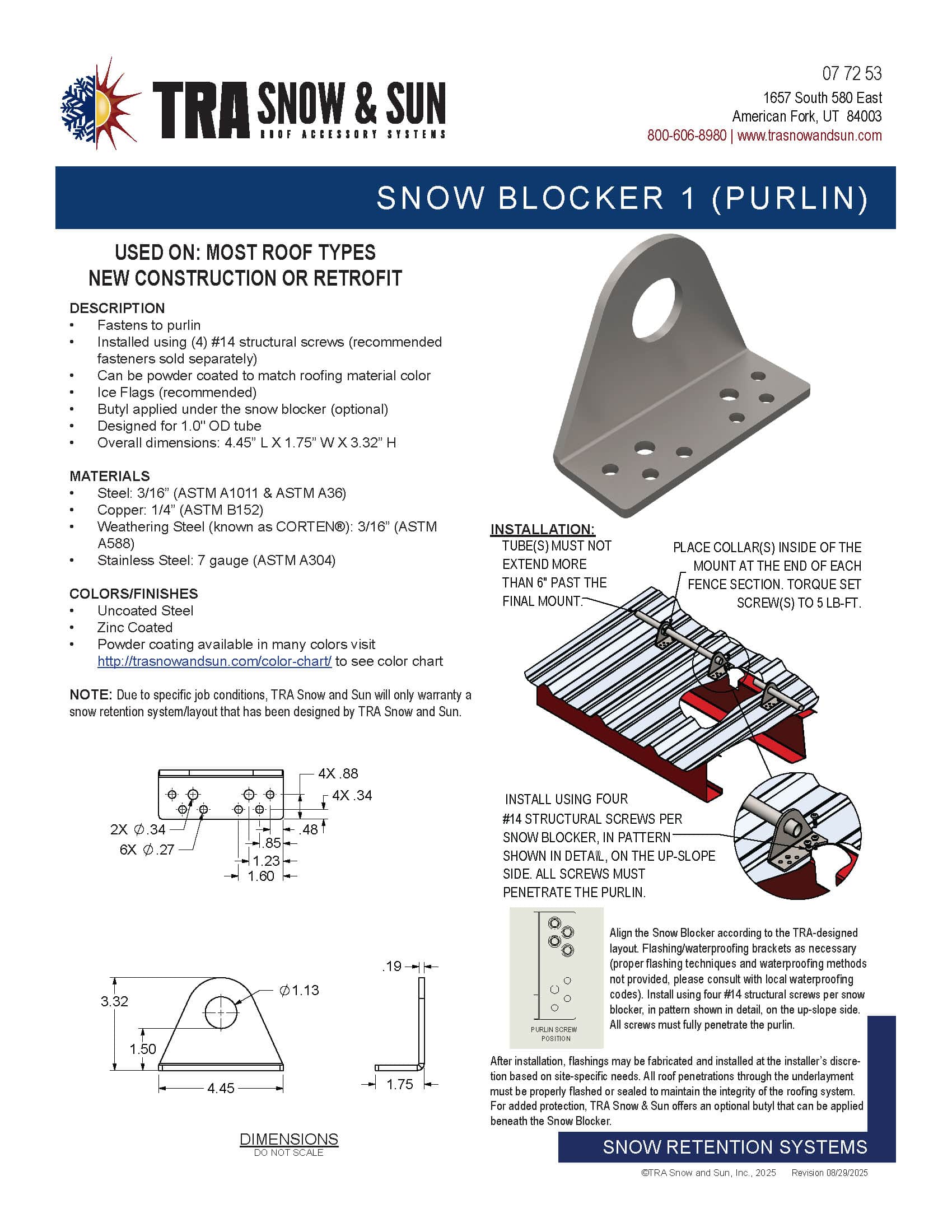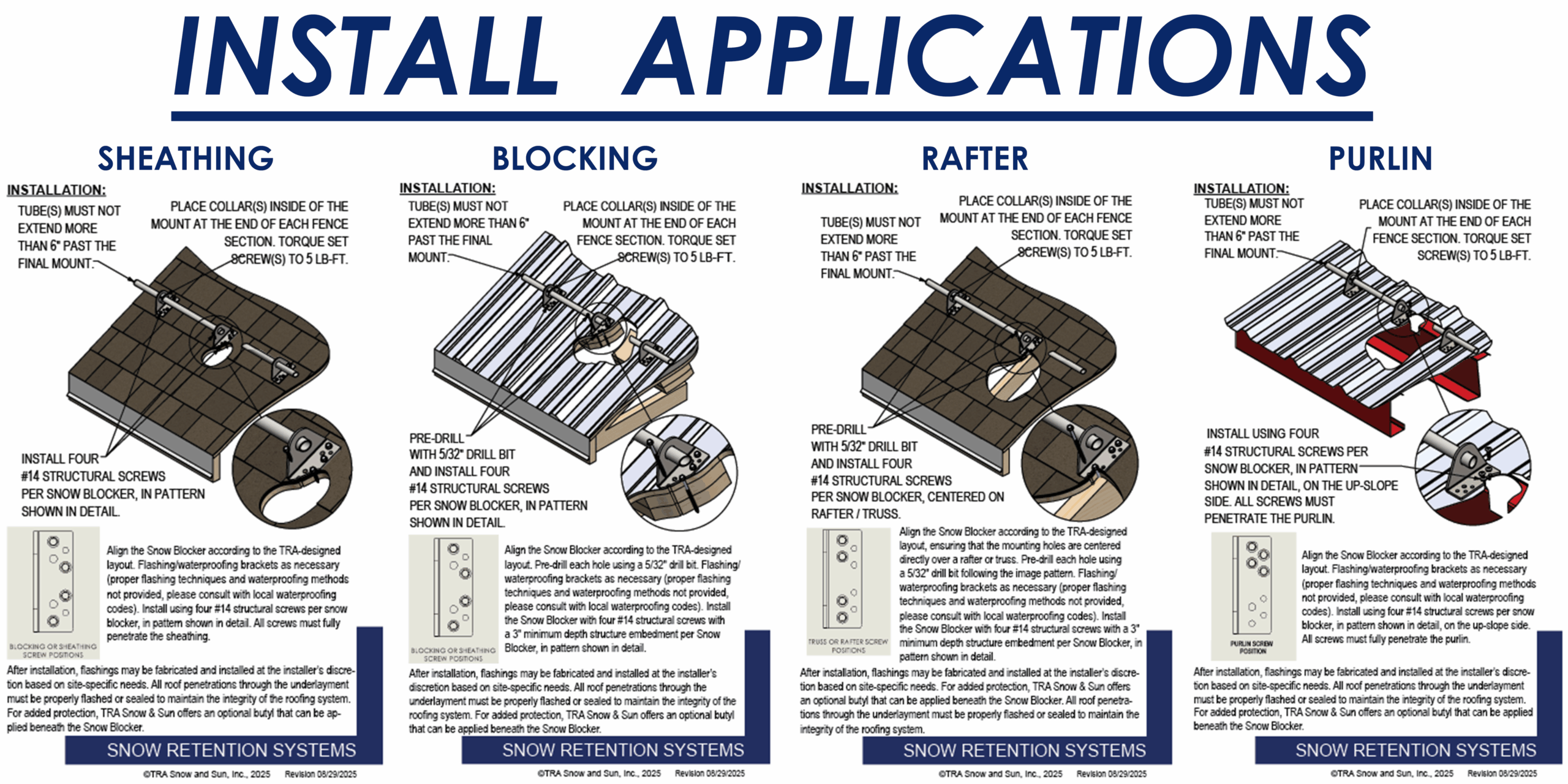 At TRA Snow and Sun we engineer and layout each project free of charge using many factors specific to your roof. We then provide you with the snow retention plan, layout and product details. TRA Snow and Sun representatives will work with you to design the most efficient snow retention system. Fill out our Snow Retention Checklist to get started.