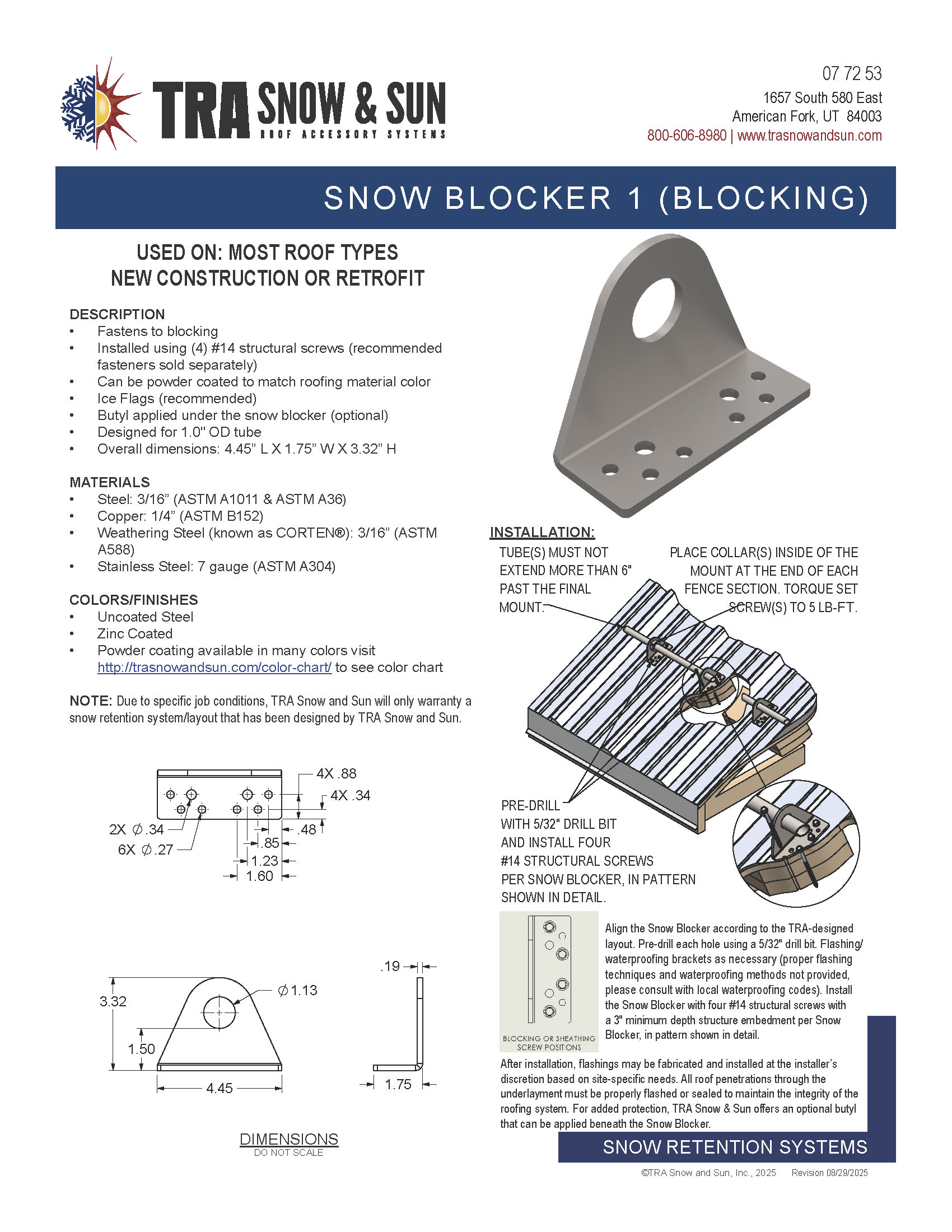 • Butyl applied under the snow blocker (optional)